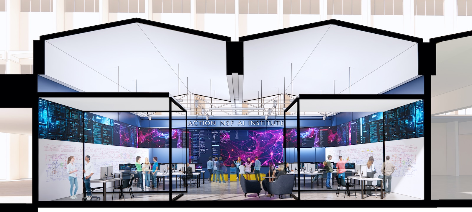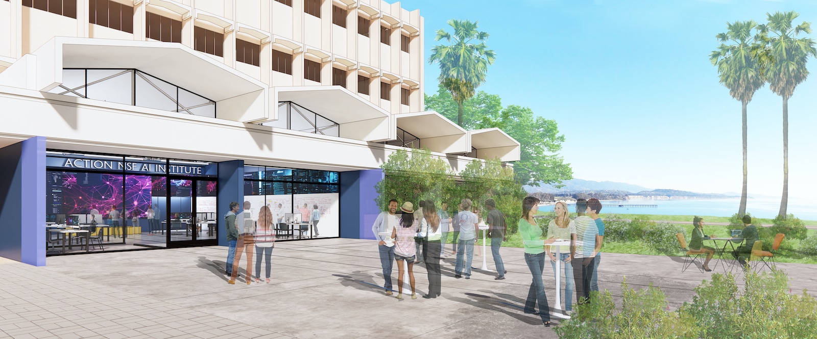 Concept design and feasibility study for a new National Science Foundation AI research facility – the ACTION Institute. Created a bold, outward-facing identity for this adaptive re-use of an existing lab inside UCSB’s Harold Frank Hall.